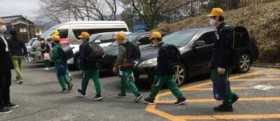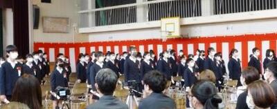 そして今日、卒業生は、朝元気いっぱい学校に集い、粟野中学校へ。