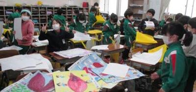 2年生教室の様子です。自分たちがこれまでつくりあげてきた作品を