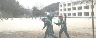 昼休み、春の陽気に誘われで、多くの子どもたちが外遊び。