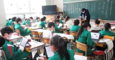 6年1組、今から帰りの会だというのに、最後までタブレット操作。