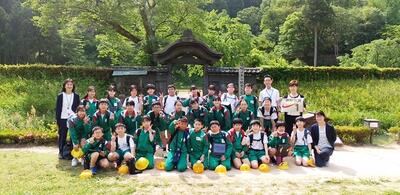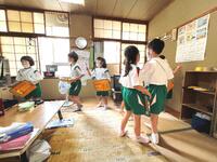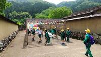 ほぼ予定通りの時刻、6年生を乗せたバスが粟野公民館に到着。