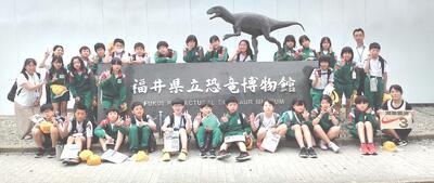 恐竜博物館前での記念撮影の後、管内で見学・クイズラリーを楽しみました。