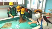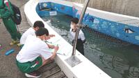 まずは班別自由行動。飼育員の方にインタビューしたり魚に触ったり。