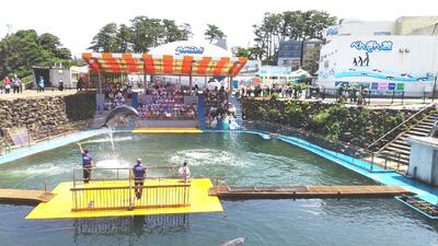 大きなジャンプに拍手や歓声が!水しぶきも上がります!