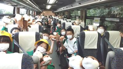 松島水族館から芝政に向かうバスの中の様子です。気分はハイ!