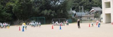 広い校庭に出て、今まで体育館での練習で学んだことを活かして、
