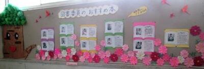 ケヤピー君(粟小PTAキャラクター)が「図書委員のおすすの本」を紹介しています。