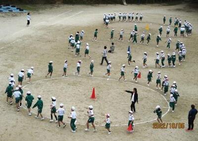 恒例となった「ダンシン玉入れ」の隊形をつくっていました。