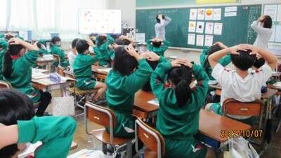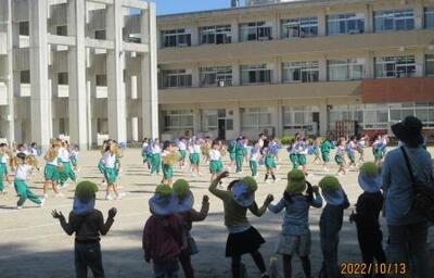 1年生は、体育大会表現種目「あわしょうにサチアレ!」の練習。