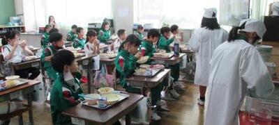 これは4年生の様子。久しぶりに栄養満点の給食をいただき大満足。