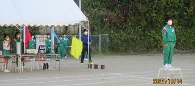 委員会活動の時間には、各係の当日練習。徒競走の決勝係の練習は本番さながら。(下)