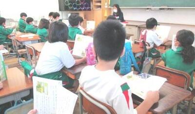 2年生は国語で、アーノルド=ローベル作の「お手紙」を音読していました。