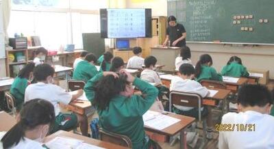 5年生の外国語の授業の様子です。ハロウィンの雰囲気を味わいつつ、