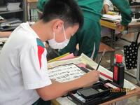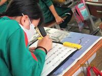 5年生の書写では、小筆で文字を書く練習に取り組んでいました。