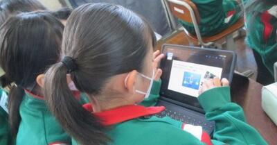 4年生は、総合で「ペットボトルの再利用」についての調べ学習。