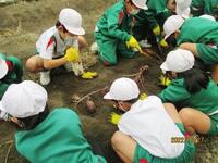 2年生の子どもたちが、畑で芋ほりを楽しんでいました。