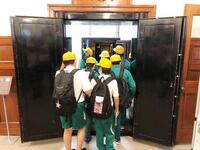 博物館では、豪勢な扉付きのエレベーター体験をしました。(左)