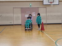 車椅子体験教室では、車椅子に乗る人と車椅子を押す人の両方を体験しました。