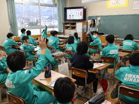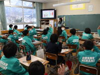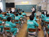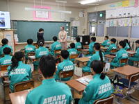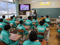 6年生が、小中連携事業の一環として、粟野中学校の先生(英語科)の出前授業を受けました。