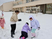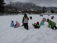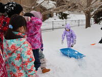 大きな雪だるまを協力して作ったり、寝転がったり、ソリで滑ったり、それぞれの学年で雪遊びを楽しみました。