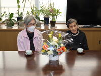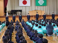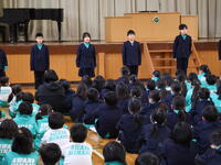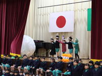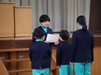 児童を代表して、児童会長、副会長が、お礼の言葉とお花をお渡ししました。