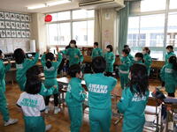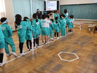 福井ブローウィンズの選手をお迎えし、B.LEAGUEの社会的責任活動「B.HOPE」の一環として実施している防災教育プログラム「B.HOPE DEFENSE ACTION(防災バスケ)」に、3年生と4年生が参加しました。