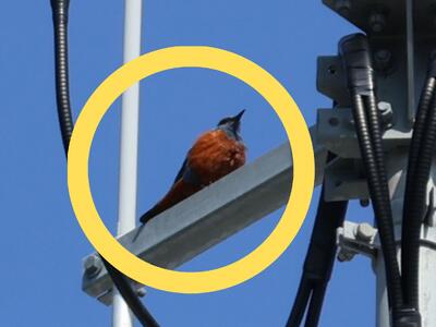 屋上から聴こえてくる美しい鳴き声とともに、イソヒヨドリのさえずる様子を観察することができました。