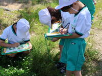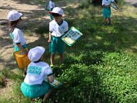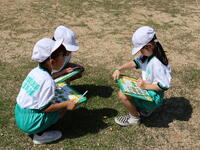 公園では、植物や昆虫など、いろいろな生き物を発見しようと、小さな科学者が目を輝かせていました。