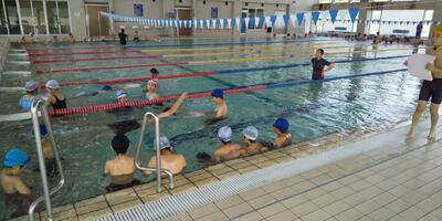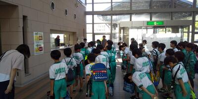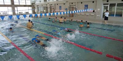 5年生が水泳学習のために、敦賀市総合運動公園プールに出かけました。
