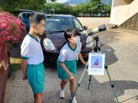 登校時間にイソヒヨドリの観察用のフィールドスコープを設置しました。