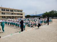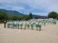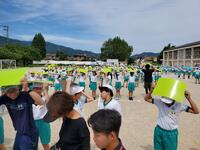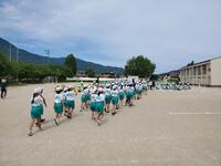 開校50周年を記念して、校庭に「粟野南 50th」を人文字で描き、上空から撮影しました。
