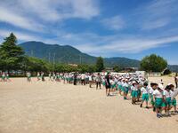 校庭では、点呼、人員確認、報告がスムーズに行われました。防災担当からの話や講評も静かに真剣に聞くことができました。一人一人の命を守るために、全員の命を守るために、これからも真剣な態度で訓練に臨みます。