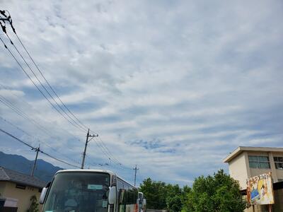 水泳学習に4年生が出発する際に、上空には「波状雲」が見られました。