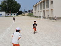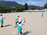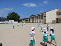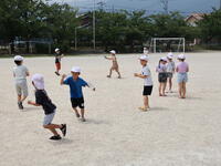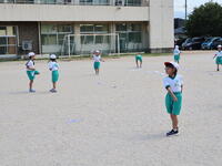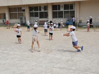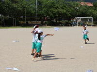 1年生が、図画工作で制作した紙飛行機を校庭で飛ばしました。
