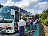 6年生が、水泳学習を行う敦賀市総合運動公園プールに出かけました。