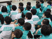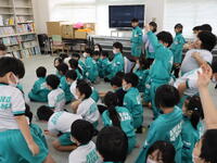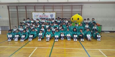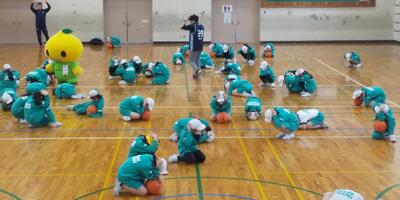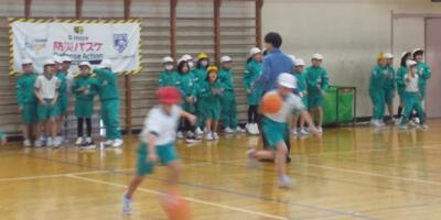 福井ブローウィンズの選手をお迎えし、B.LEAGUEの社会的責任活動「B.HOPE」の一環として実施している防災教育プログラム「B.HOPE DEFENSE ACTION(防災バスケ)」に、3年生と4年生が参加しました。