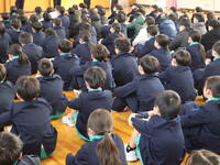 5時間目に、体育館で委員会の活動報告が行われました。