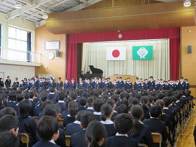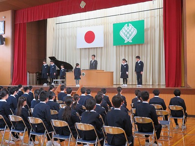 卒業式の本番も近くなり、全校での予行練習が行われました。本番と同じ流れでの練習だったため長時間の練習となりましたが、卒業生も在校生も本番を思わせるほど集中し、入場から退場まで行うことができました。