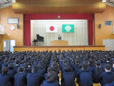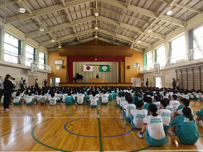 12月21日(金) 明日から冬休みです。今日は全校集会を行い、校長先生のお話をうなずきながら聞くことができました。「けがなく、じこなく・元気よく!!」全校のみんなで声を合わせました。充実した冬休みを過ごしてください。