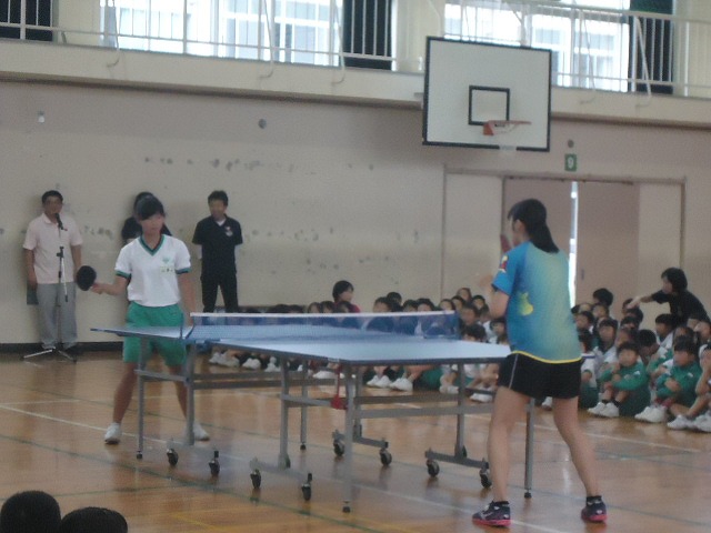 9月20日(木) 国体卓球福井県代表選手が来てくださいました。実際に試合をする様子を見せていただき、敦賀高校の坂田先生に、応援の仕方やかけ声のかけ方などマナーについて教えていただきました。全校で福井県選手の応援に行きます!!