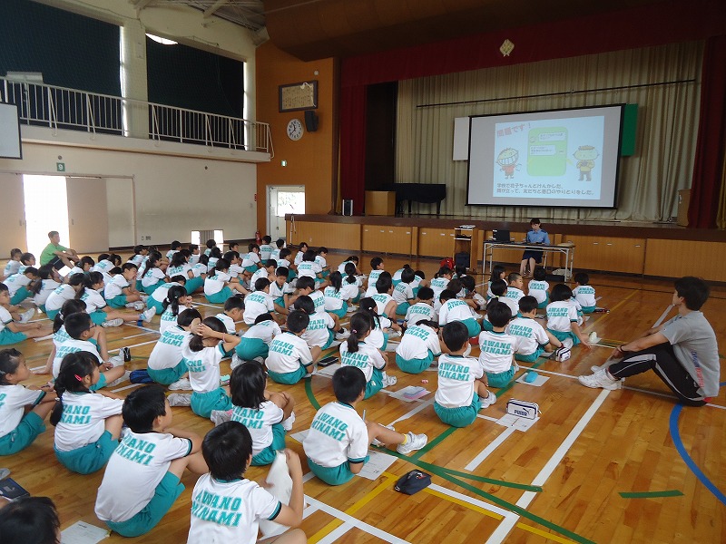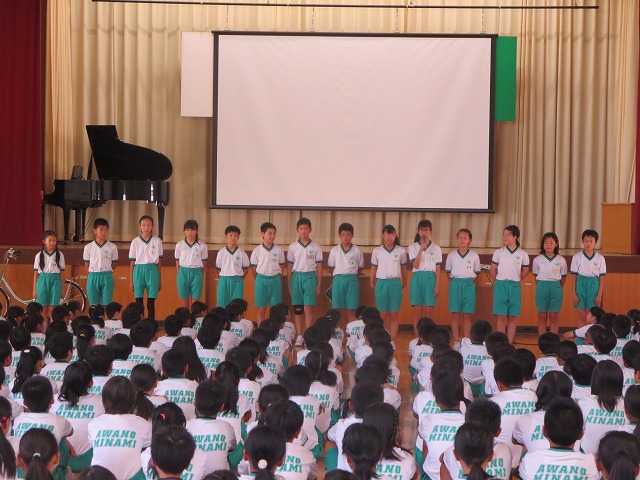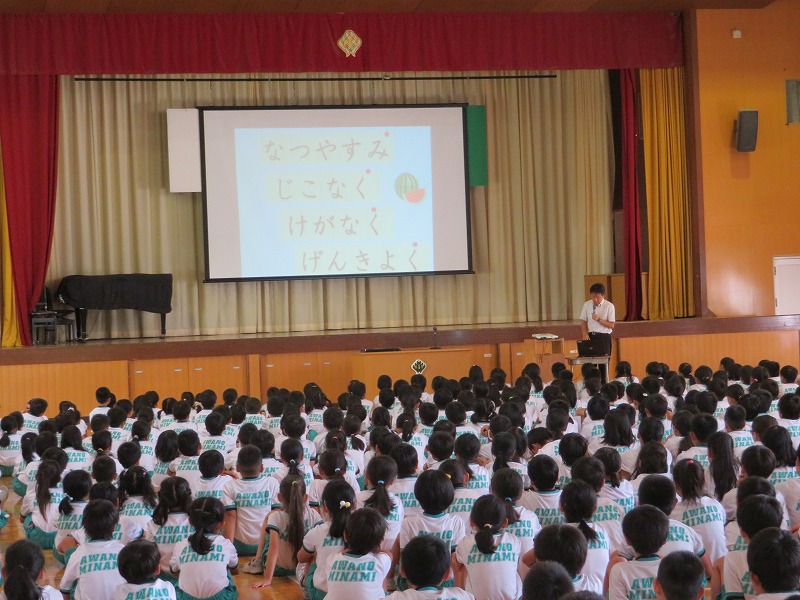 7月20日(金) 明日から夏休みです。夏休みの過ごし方について全校で確認しました。また、夏休み中に、学校外で活躍する児童の壮行会がありました。活躍を期待しています。