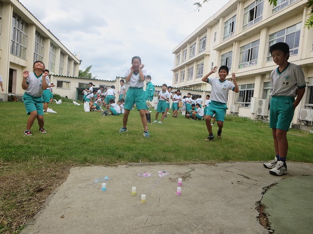 9月14日(金) たてわり班でグループになって、原子力機構の方々によるフィルムロット作りや、海浜自然センターの方々の海の生き物とのふれあいなどの実験教室めぐりをしました。子どもたちは、様々な実験に目を輝かせていました。
