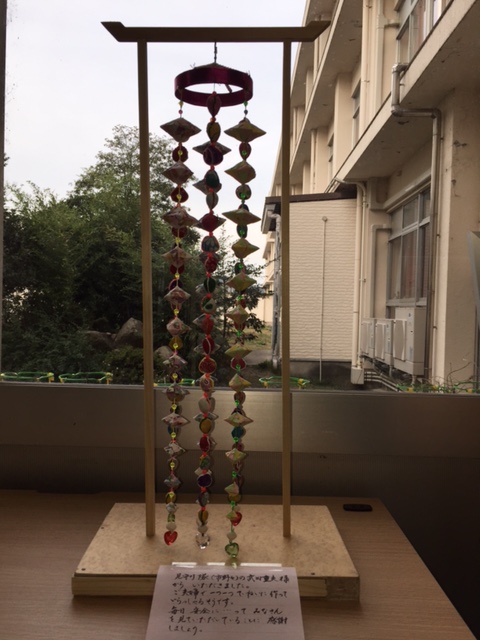 | 概要 | 市野々にお住まいで見守り隊のメンバーであるご夫婦から粟野南小学校にいただいたものです。みなさんに見ていただけるよう児童玄関に飾りました。毎日子どもたちの安全を願ってくださっている方々に感謝の気持ちをあいさつなどで伝えたいですね。 |