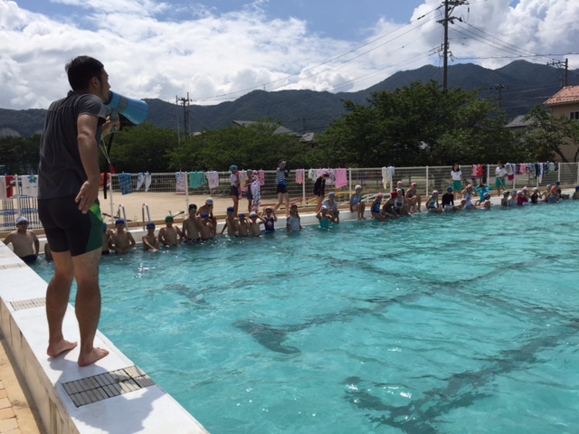 | 概要 | 7月27日(水)から29日(金)まで3日間3年生以上を対象にサマースクールと水泳教室を行っています。1日目は約40名の4,5,6年生が25m泳ぎきることにチャレンジしている様子です。夏休み中も自ら鍛える粟南っ子です。 |