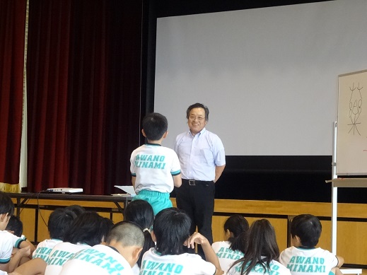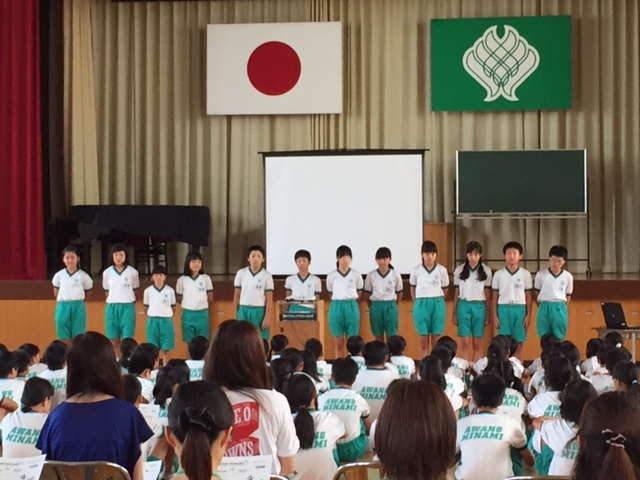 | 概要 | 7月20日(水)1限目に全校集会がありました。校長先生のお話の前におそうじ大賞などの表彰がありました。校長先生からは、①夏休み中たくさんの人にあいさつしよう。②交通事故にあわない。についてお話がありました。くわしくは「粟生野第4号」をごらんください。 |