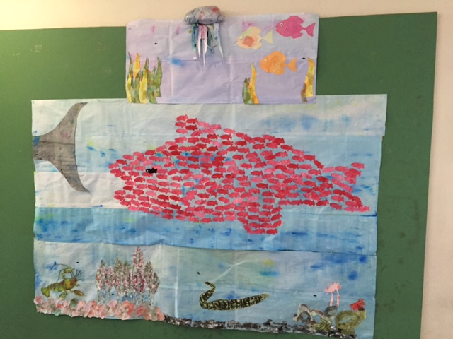 | 概要 | 今月の掲示は国語の教科書にもでている「スイミー」です。みなさんはどのさかながスイミーか当てられますか?見つけてみましょう。 |