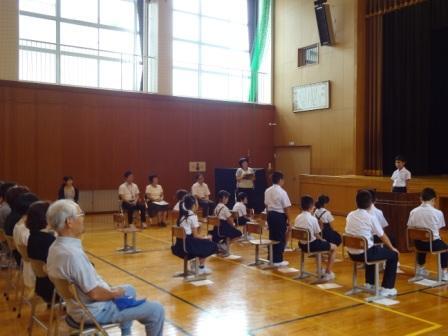 夏休み中に子どもたちが体験したことについて書いた作文を、全校児童と保護者の前で発表しました。作文の内容は、家族と旅行したこと、子供会や地域の行事に参加したこと、スポーツ少年団活動のこと、外部機関のイベントに参加したことなど、様々でした。どの子も大きな声で堂々とした態度で発表できており、自由な夏休みならではの、楽しい時間を過ごしたことがよく伝わりました。