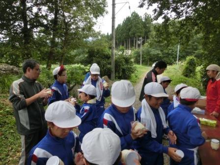 9月12日の午後、沓地区にある丸山古墳の見学に全校で出かけました。