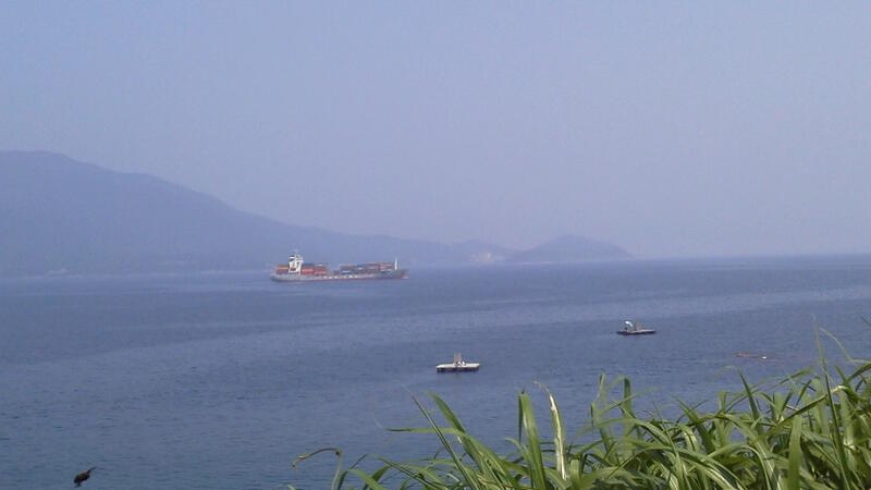 海を見ると、養殖いけすでは、漁師さんたちがいつものように餌やりをされていました。