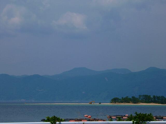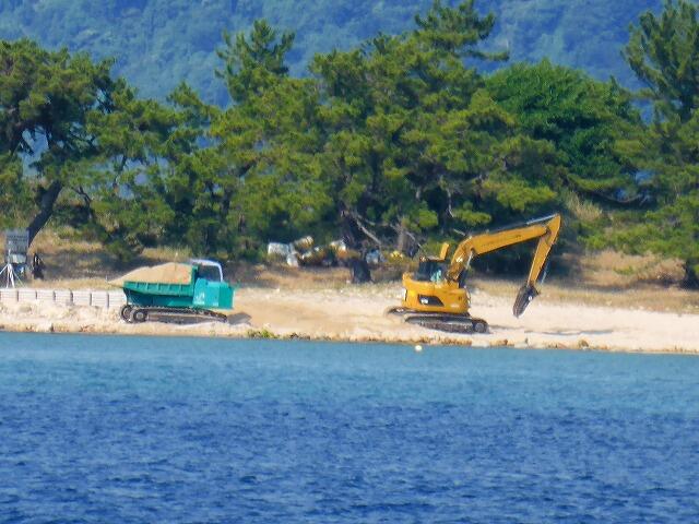 夏に向けて、海水浴場の準備が進んでいます。これは、学校から写した水島の一部。砂浜の整備が今週から始まりました。